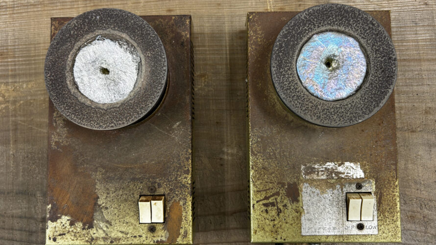 ラベルなども消え、詳細はわからないがサイズなどから型式を推察。この時代は、同じサイズのものがOEM的に発売されており完全一致とまでは言い切れない。 動作確認すると、しっかりハンダが溶解された。本来であれば既存のハンダは捨て新しいハンダに入れ替えるべきだが、高騰しているのでとりあえず溶かしてみる。 2台同時にスイッチを入れる。7分後くらいに一部融解し、9分後にはどちらも完全に液体となった。このことか […]