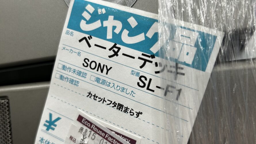 ジャンク。蓋が閉まらないそう。110円。とりあえず電源入れてみた。液晶などは液漏れしており状態は悪い。情報通り蓋閉まらず。 もう一台の機械と連動して電源ははいる。どっかにBETAのテープ売ってないかな。 直してBETAみたい。